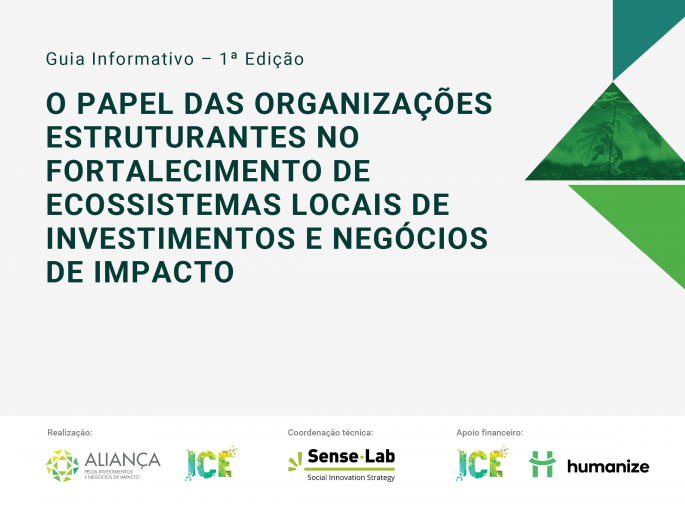 Lançada como um guia informativo, a publicação O papel das Organizações Estruturantes no fortalecimento de ecossistemas locais de investimentos e negócios de impacto contou com coordenação técnica do Sense-Lab e apoio do Instituto humanize. Nela são apresentados os conceitos de impacto coletivo ou de desenvolvimento de ecossistemas de apoio a negócios de impacto que pautam o trabalho das organizações estruturantes, e os riscos da ausência destas organizações nas estratégias de fortalecimento de ecossistemas locais.